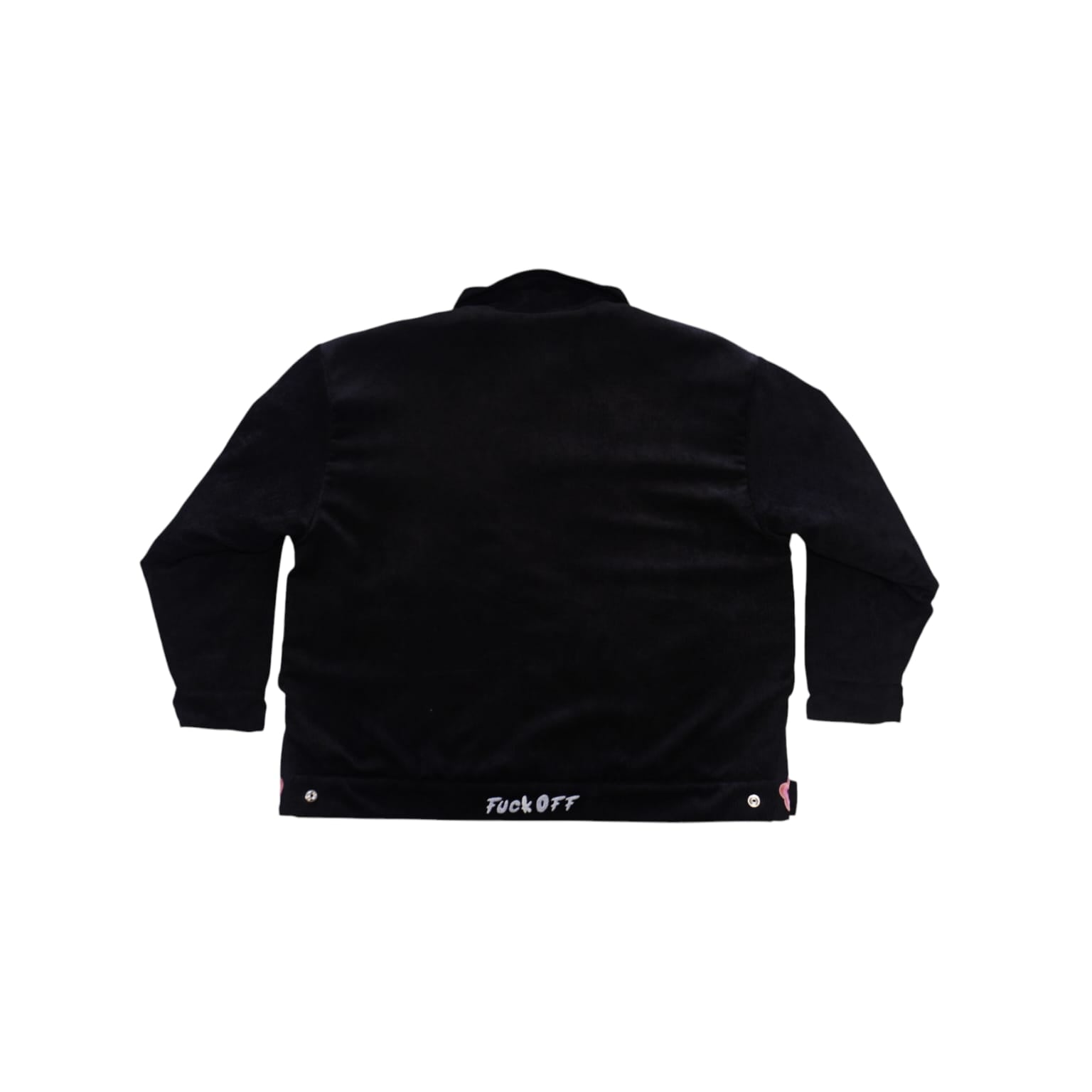 - Letras (FUCK OFF) bordadas en la espalda baja.