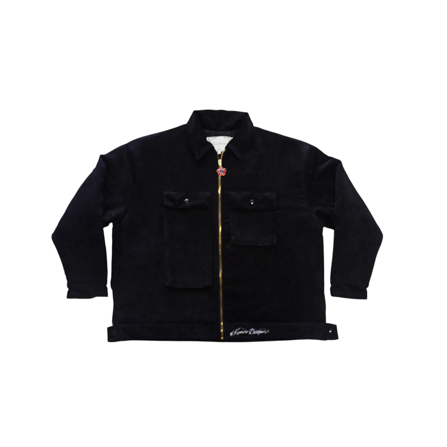 Esta inspirado en las prendas de pana de los 90s ya que tiene un corte holgado pero corto haciendo una silueta tipo caja.
