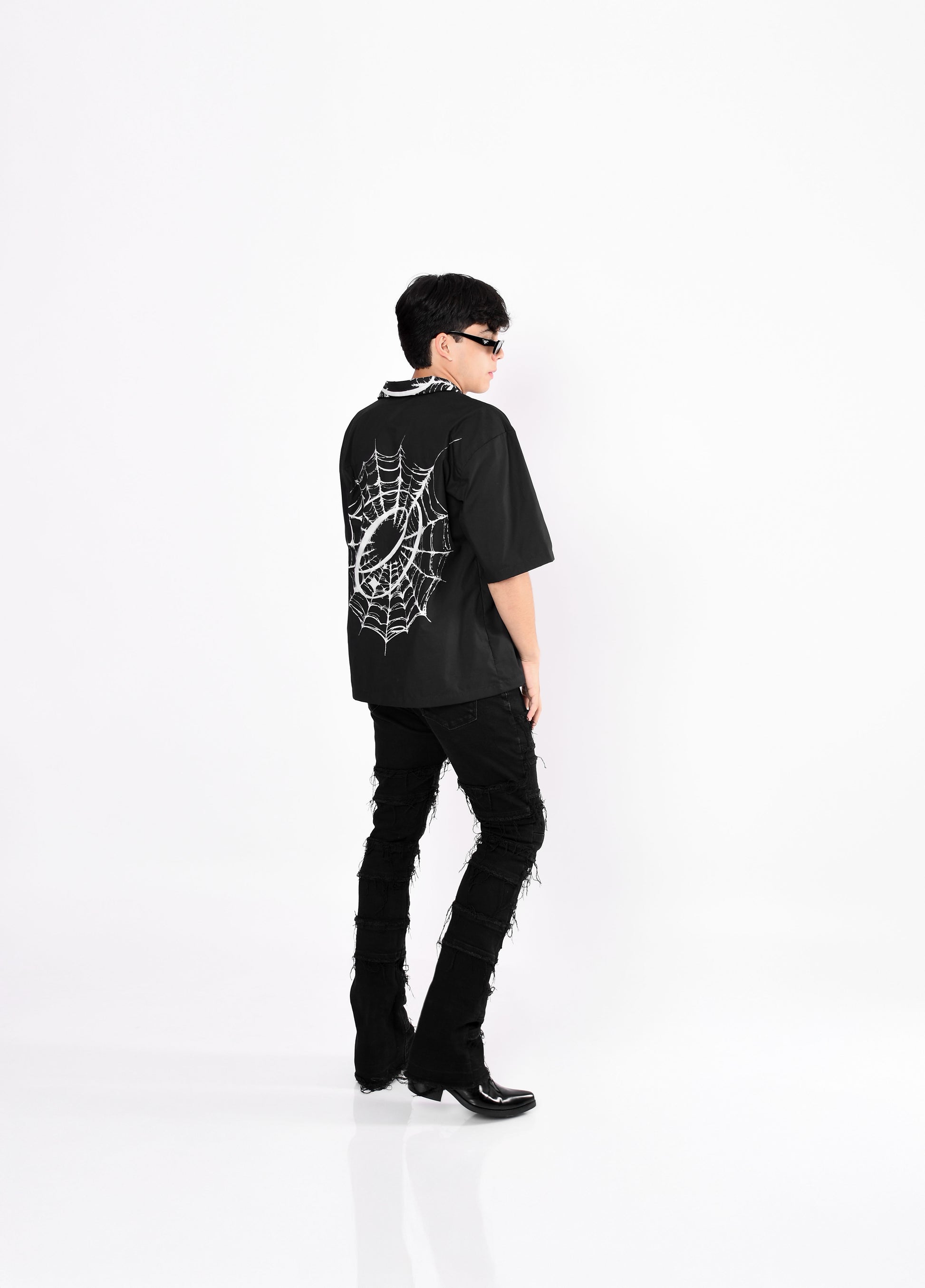 Black Spider-Web Shirt. Colaboración Kamero X Okstar